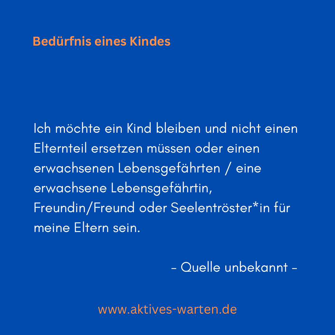 - Ich möchte ein Kind bleiben und nicht einen Elternteil ersetzen müssen oder ein erwachsener Lebensgefährte / eine erwachsene Lebensgefährtin, Freund/Freundin oder Seelentröster*in für meine Eltern sein.